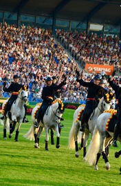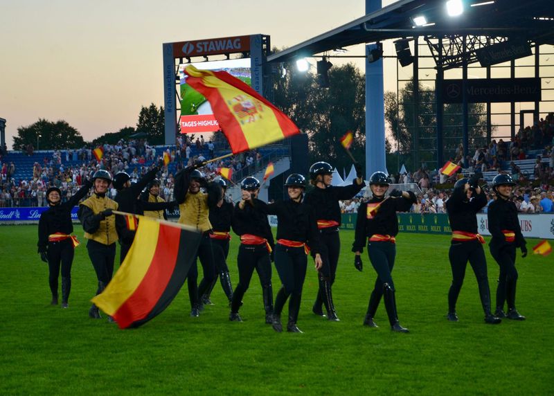 nachdem wir in diesem Jahr wieder auf der Equitana waren wurden wir dort gefragt ob wir beim CHIO Aachen den Familientag und die ERöffnungsfeier mitreiten würden. Und ob wir das wollten ! 18 aktuelle und ehemalige Pferde der Yeguada Torrehermosa waren dabei, es war ein mega Erlebnis