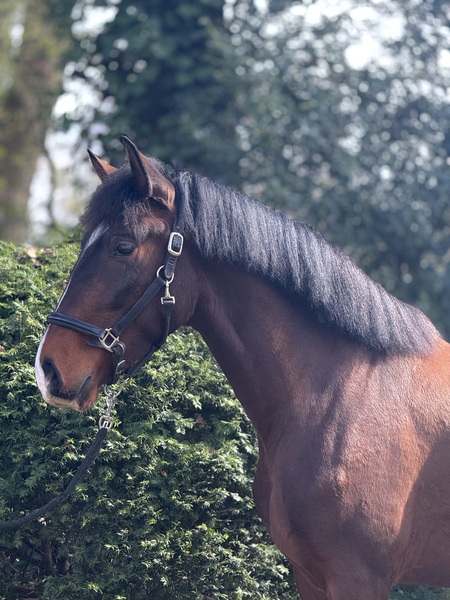 Er liebt Geländeritte , springt einen kleinen Paqours , war schon einmal auf einem Turnier und kennt die Reithalle sowie den Außenplatz.
